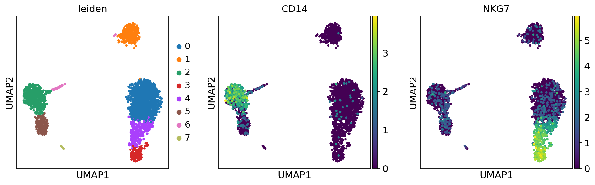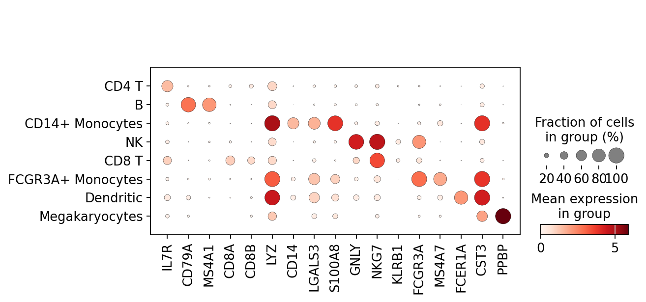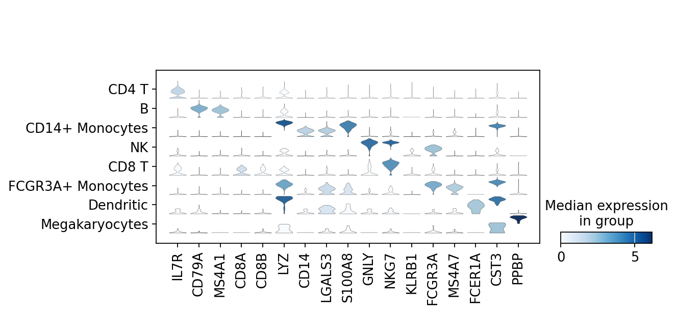 *["IL7R", "CD79A", "MS4A1", "CD8A", "CD8B", "LYZ", "CD14"],