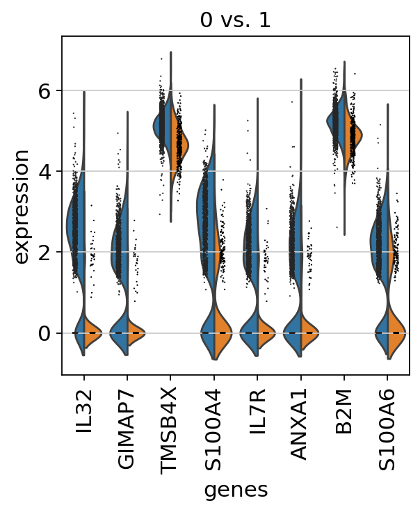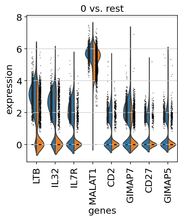 If we want a more detailed view for a certain group, use sc.pl.rank_genes_groups_violin.