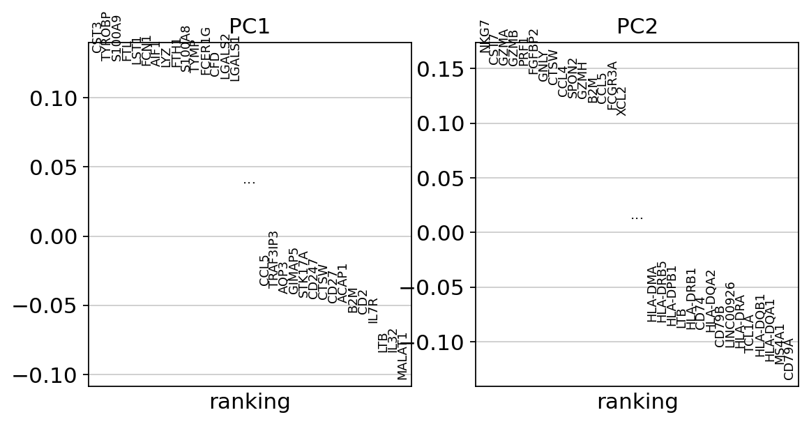 2 IL7R 2.756677e-110 HLA-DRA 2.840744e-168 S100A8 6.457752e-238 GZMB 1.164234e-85 CST7 2.245444e-88 AIF1 2.463548e-85 HLA-DRB1 3.140833e-17 GNG11 4.733899e-10