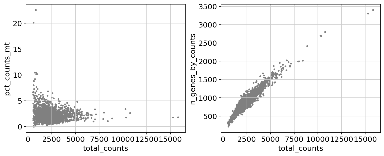 (adata.obs.n_genes_by_counts < 2500) & (adata.obs.n_genes_by_counts > 200) & (adata.obs.pct_counts_mt < 5),
