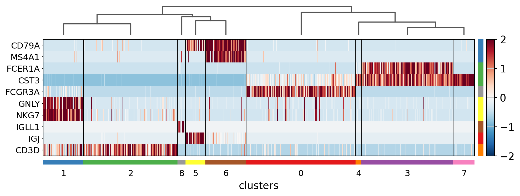 sc.tl.rank_genes_groups(pbmc, groupby="clusters", method="wilcoxon")