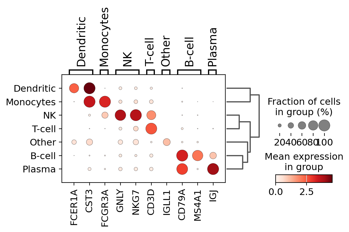 Visualize marker genes using dotplot#